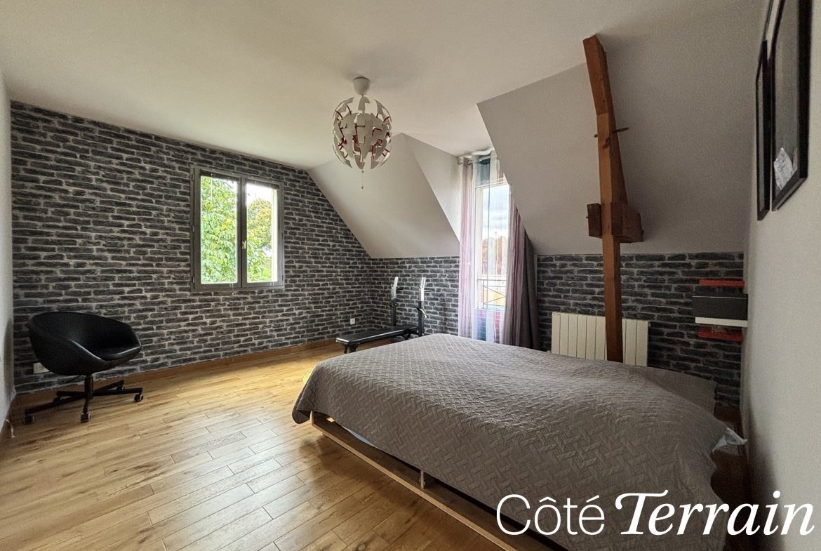 À l’étage, vous trouverez une seconde suite parentale avec dressing et salle de douche, deux autres chambres spacieuses, ainsi qu’une salle de bains.
