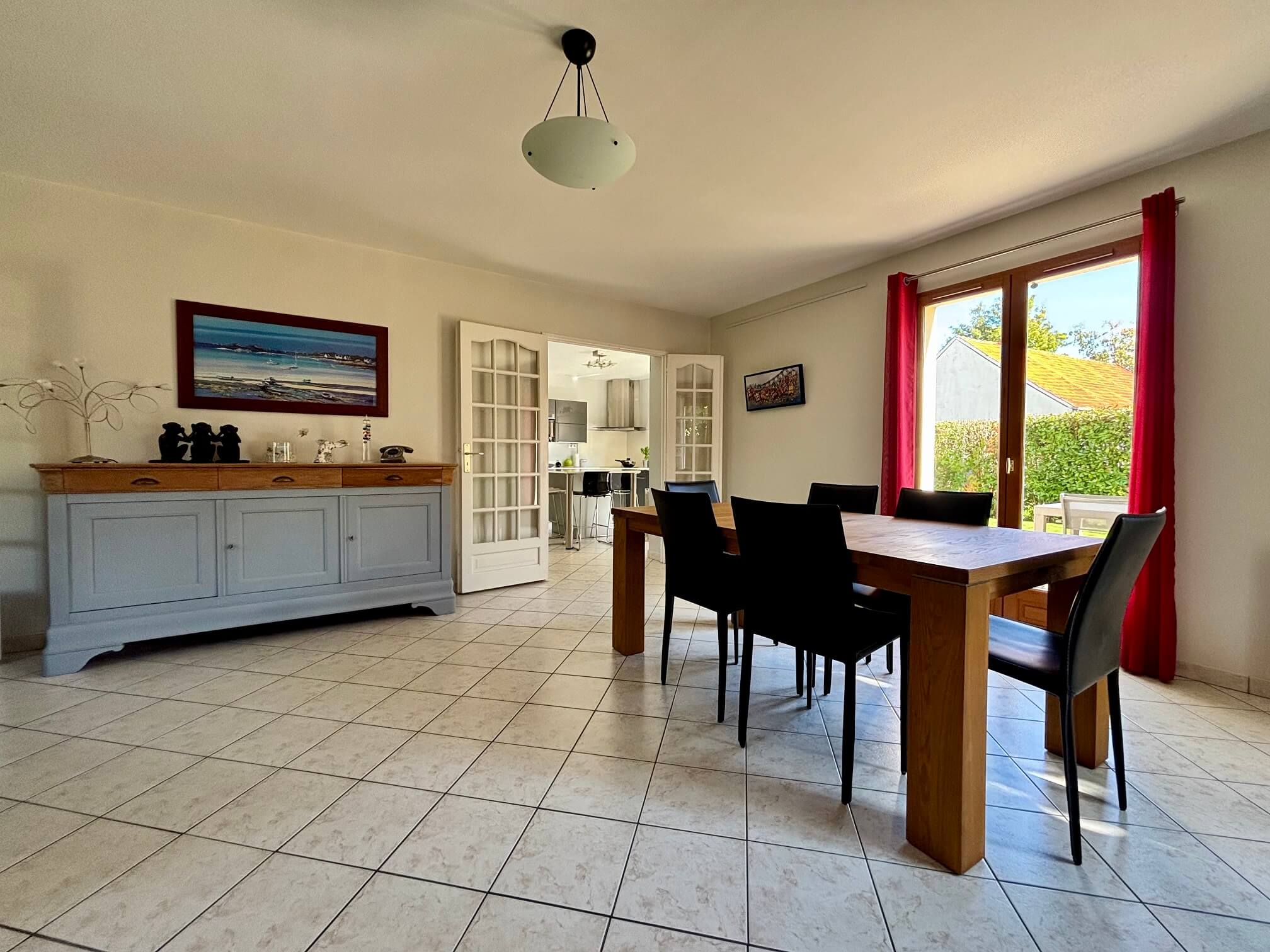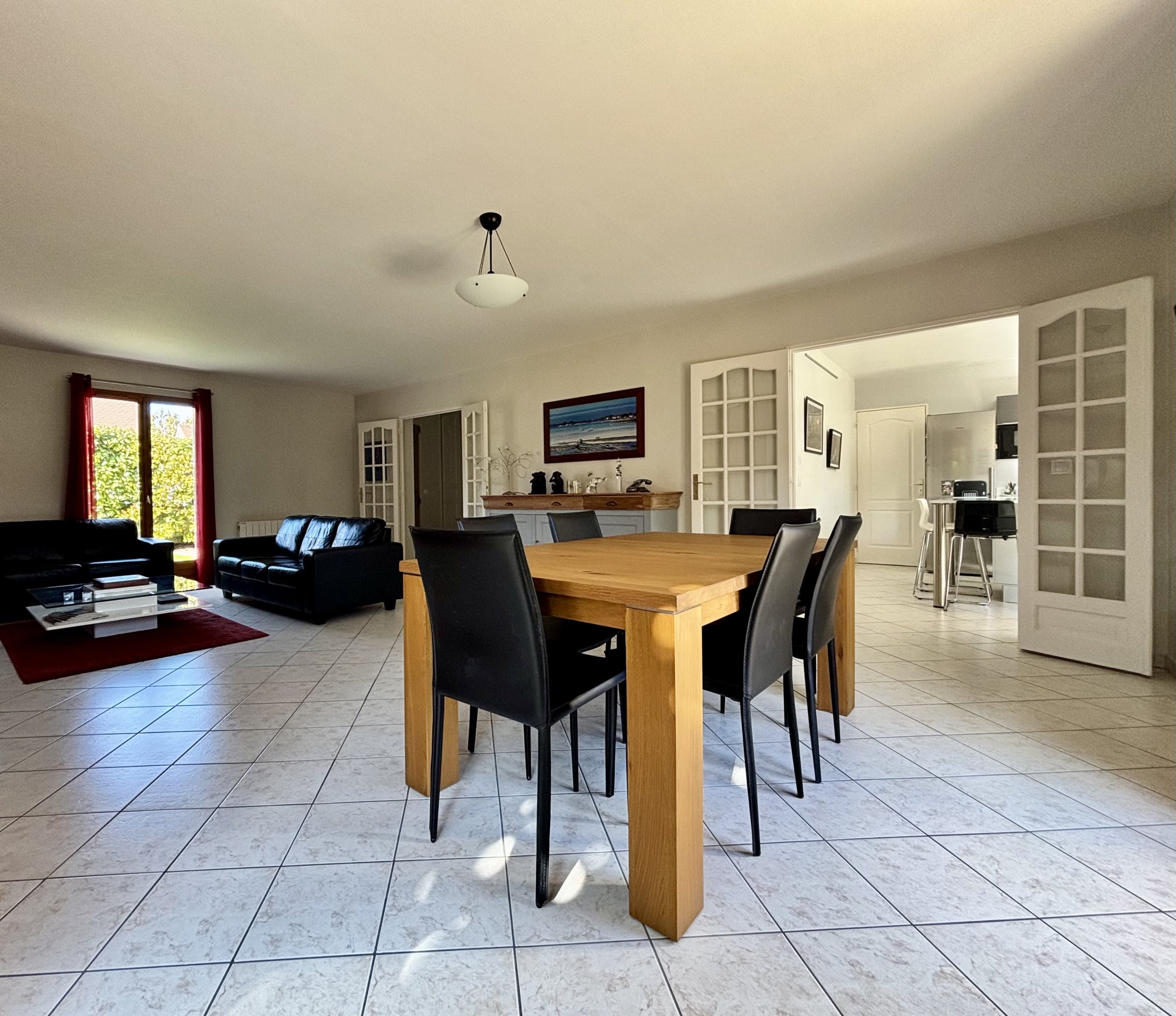 Dès l’entrée, vous découvrirez une spacieuse pièce de vie baignée de lumière, comprenant un double séjour et une cuisine aménagée et équipée, idéale pour recevoir en toute convivialité.