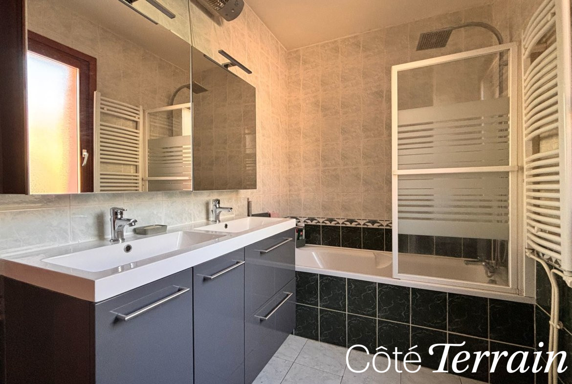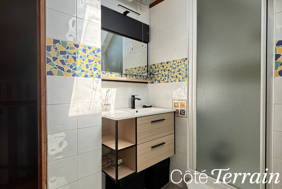 Ce niveau comprend également une suite parentale de plain-pied avec salle de bains privative, parfaite pour profiter d’un espace personnel fonctionnel et confortable, sans avoir à monter à l’étage.